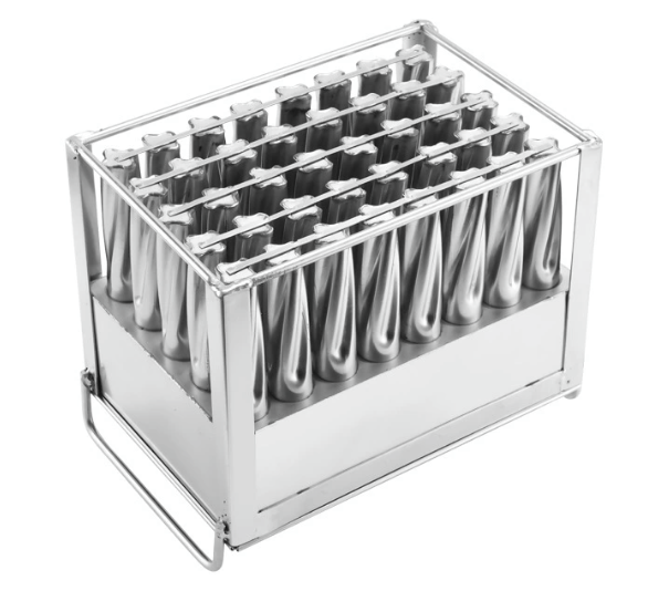 El molde de paletas es ideal para elaborar paletas artesanales de manera uniforme y con acabado profesional. Fabricado en acero inoxidable de alta calidad, garantiza durabilidad, higiene y fácil limpieza.